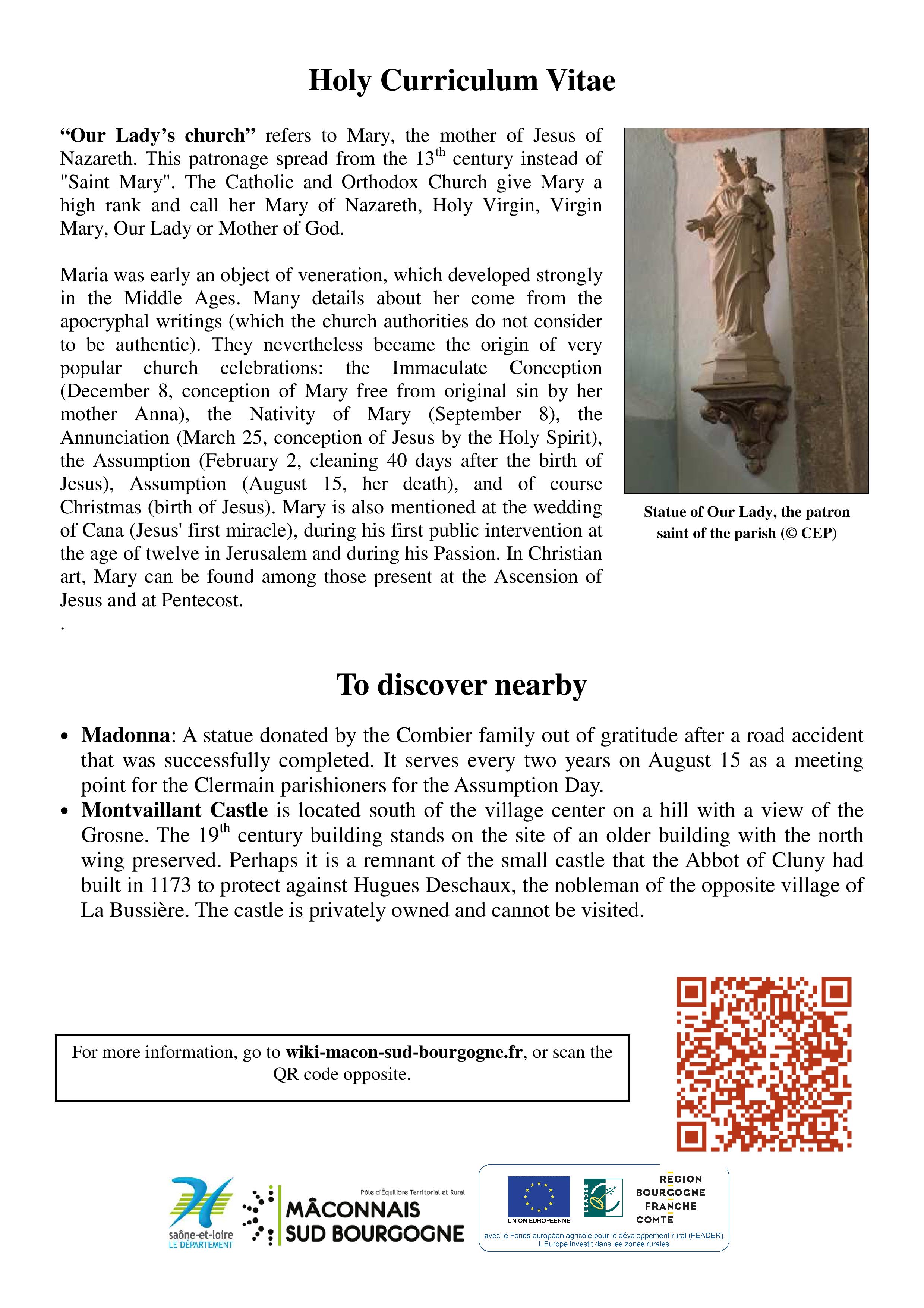 | Paroisse de rattachement | Paroisse des Saints Apôtres en Haut Clunisois |