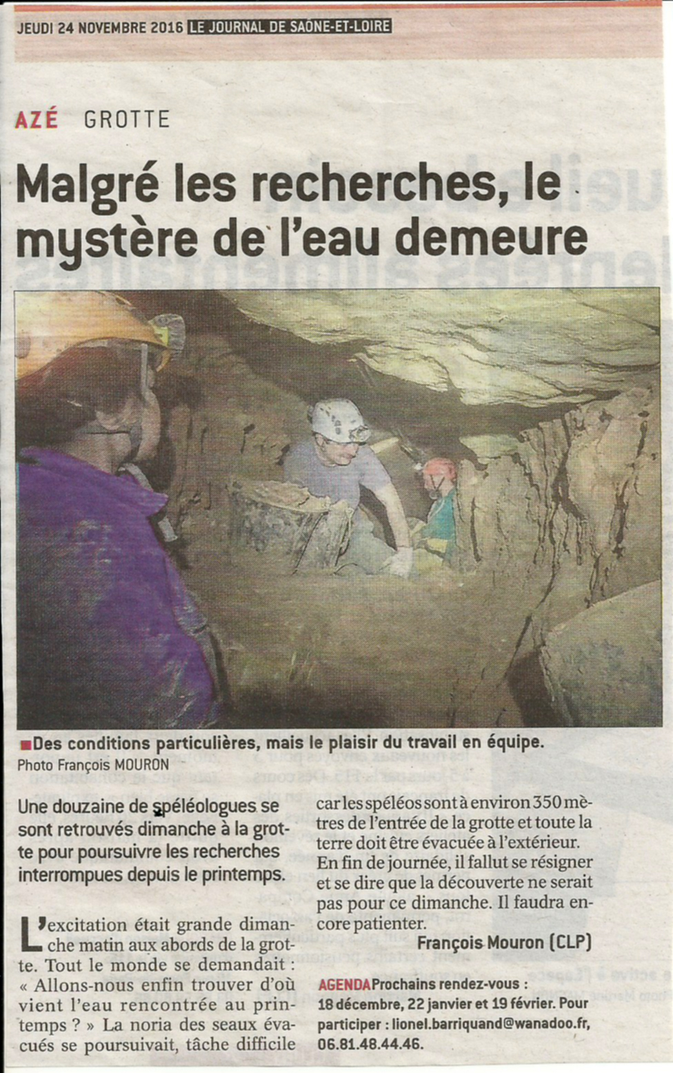 Grotte d'Azé - Spéléologie - Nouvelle Cavité 2e article JSL 24-11-2016.jpg