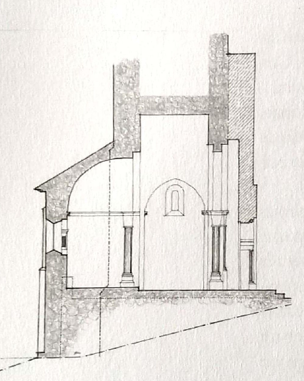 Coupe axiale de la chapelle, par Jean-Claude Morlon